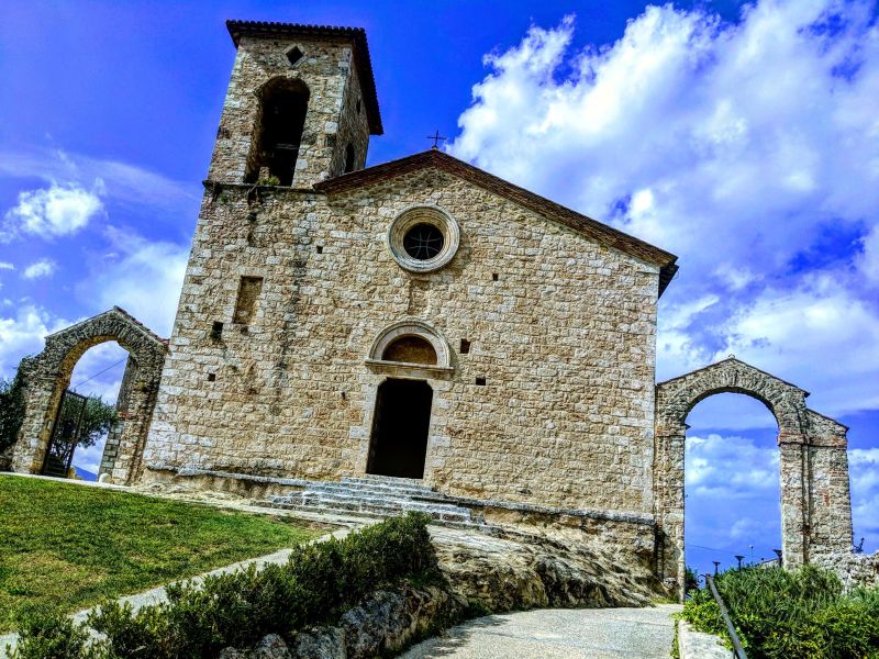 Arrivati in Piazza Duomo, percorrendo via Don Morosini, a sinistra si apre la Valle del Sacco verso Frosinone; Veroli si intravvede dietro Monte Radicino. A destra si vedono i resti della nuova cattedrale progettata alla metà dell’Ottocento da Andrea Busiri Vici, ma mai portata a termine. Su Piazza Duomo si affaccia la cattedrale romanica del XII secolo dedicata ai fratelli martiri romani Giovanni e Paolo. Fu costruita all’epoca del vescovo Agostino, che eresse questo meraviglioso tempio sulla spianata dell’acropoli romana, utilizzando i resti di precedenti templi pagani ivi edificati. Sicuramente uno di questi edifici pagani era dedicato alla Vittoria Augusta l’altro a Ercole Ultore: ambedue le divinità pagane potevano essere sostituite dal nuovo vincitore: S. Ambrogio martire, il patrono di Ferentino.