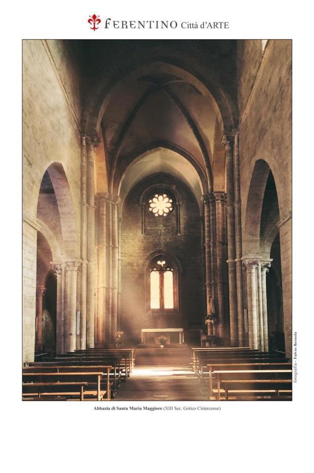 Seguendo le strette vie del centro storico di Ferentino, che, nell’impianto urbano medievale, si dipanano come i fili di un gomitolo, si arriva davanti ad uno splendido edificio sacro: la chiesa di S. Maria Maggiore in stile gotico-cistercense. Edificata alla metà del XIII secolo dalle maestranze dei conversi cistercensi provenienti dalla vicina Abbazia di Casamari o di Fossanova, sorge su preesistenti chiese paleocristiane/altomedievali, le cui fondamenta sono venute alla luce durante i restauri della Chiesa superiore degli anni ‘70 del secolo scorso; si sono rilevate le fondazioni molto frammentarie di due edifici, probabilmente chiese: una databile al V-VI secolo d. C.; l’altra più grande all’VIII-IX secolo d. C. Un’iscrizione romana del IV secolo, conservata nella chiesa, fu trovata agli inizi del XX secolo durante gli scavi per impostare il nuovo altare in stile neogotico, opera dell’ing. Luigi Morosini di Ferentino. L’epigrafe ricorda che in quel luogo si ergeva la domus di Valerio Gaio, distrutta durante una violentissima persecuzione dei cristiani, domus che la sposa Dolcissima, di 34 anni e 10 mesi, ricostruì a sue spese, forse dopo l’editto di Milano (313 d. C.) per renderla chiesa..jpg)