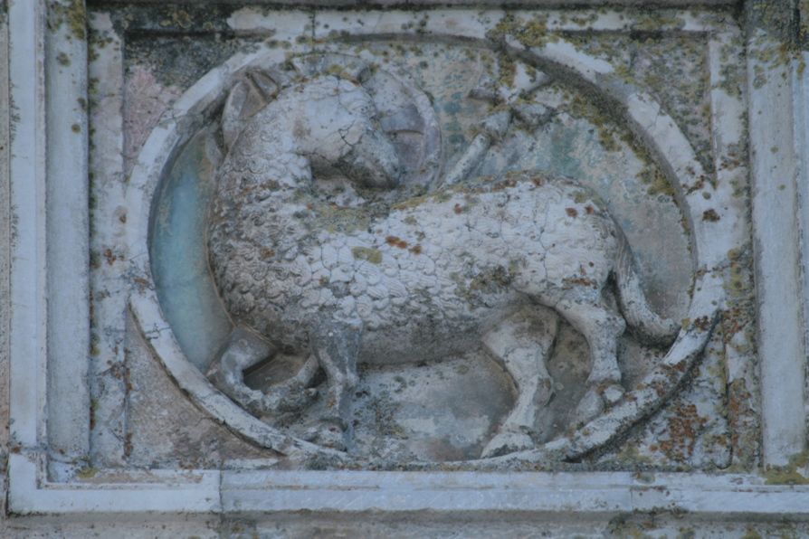 Chiesa di Santa Maria Maggiore, facciata decorazioni dell’archivolto soprastante la porta laterale sinistra (XIII secolo) (foto ICCD)
